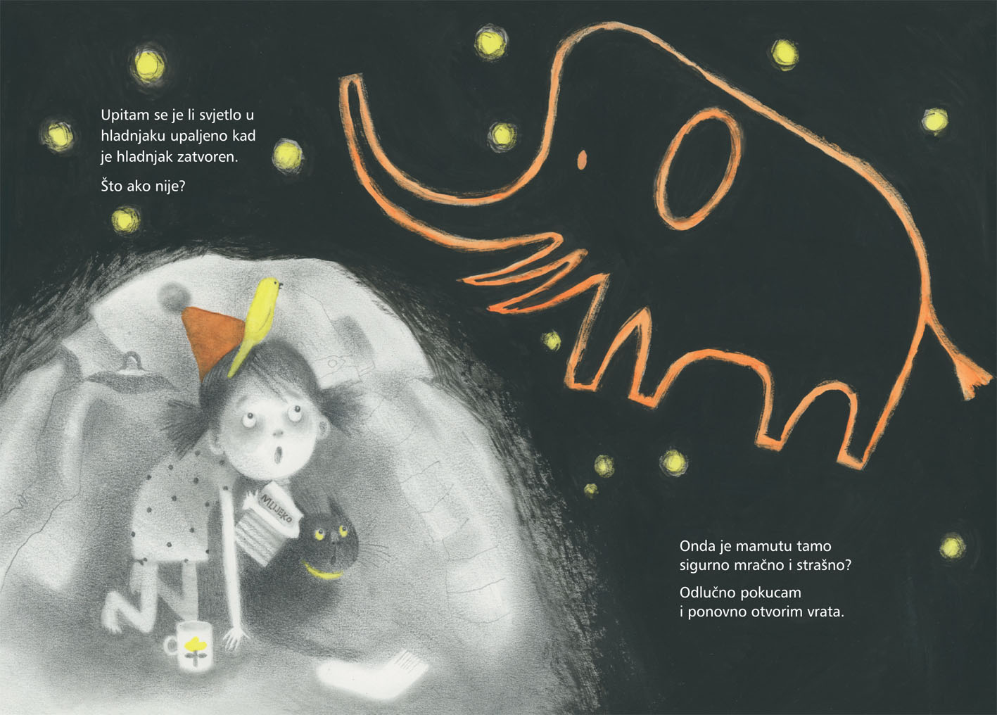 Kasnije se pojavljuje i drugi, blaži problem: djevojčicu brine je li mamutu hladno i mračno u hladnjaku te hoće li ikad probati lubenicu.