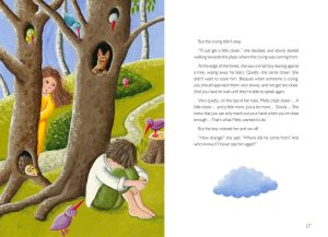 The illustrator adds her own interpretation to the text, enriching it with imaginative and high-quality illustrations that tell another story – about a house filled with conflict, sadness, and unrest; the secrets of a birch forest; an underground cave lake; birds and other forest animals; and much more. For this reason, the picture book invites rereading, discovery, and conversation, encouraging dialogic reading and storytelling.